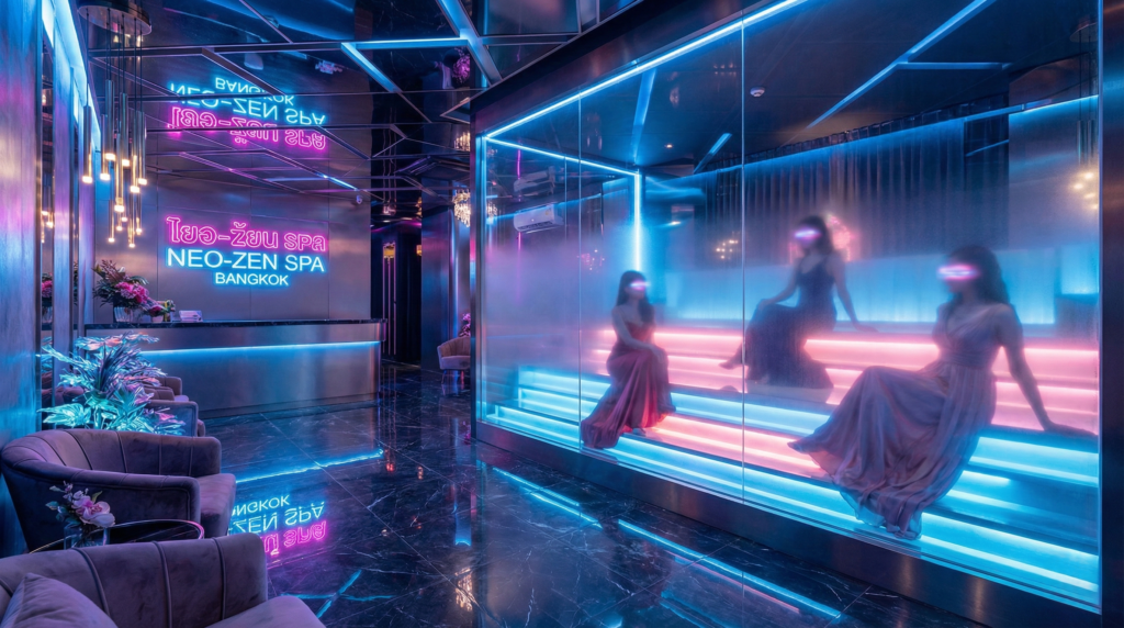 - 系统: 与泰浴的大型场所不同,这些店通常位于素坤逸路(Phrom Phong, Thonglor)的高档公寓区,更具私密性。通常通过iPad照片或本人见面进行选择。
